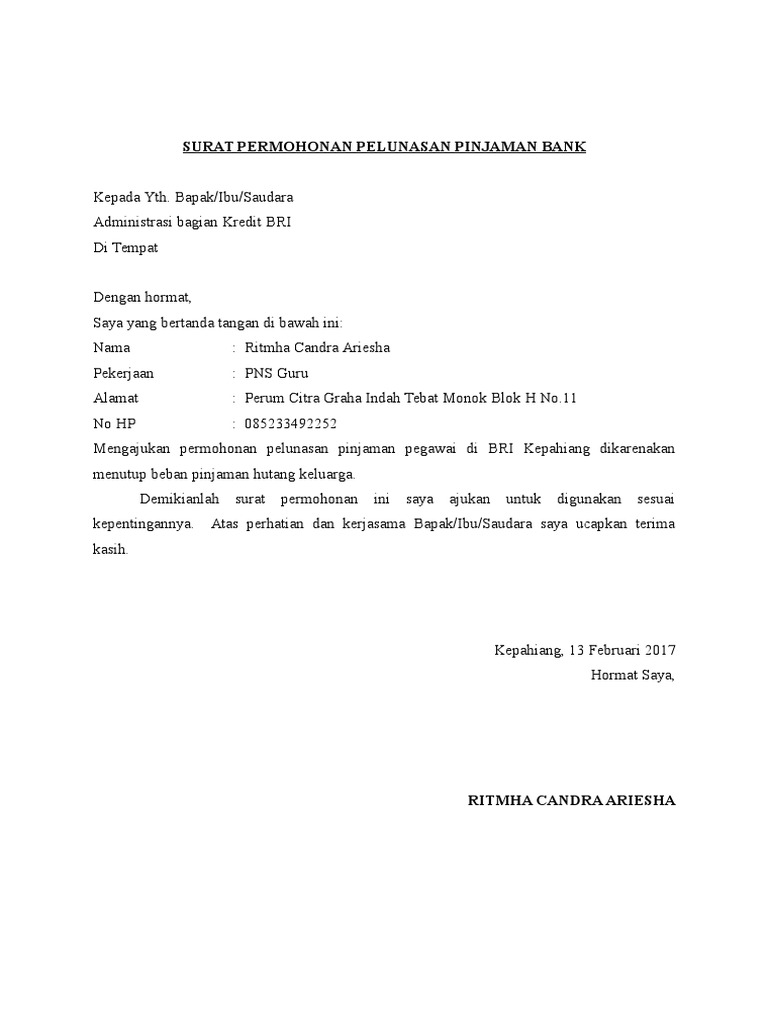 Download Contoh Surat Permohonan Pelunasan Kredit from contohsuratlengkap.org Tidak ada satu cara untuk memperbaiki surat perjanjian. Pedoman kerja komite kredit download. Cara menggunakan kalkulator kpr bca. Satu alasan umum orang membutuhkan surat perjanjian adalah ketika mereka secara lisan setuju untuk melakukan pekerjaan untuk seseorang dan menginginkan persetujuan tertulis dari suatu ketentuan. Dokumen surat pernyataan di atas materai user menerangkan posisi yang bersangkutan dalam perkara tersebut. Apr 19, 2011 · mengirimkan surat pernyataan piutang, dan membuat daftar analisa umur piutang setiap periode. Surat pernyataan di atas materai user akan mengganti biaya yang dikeluarkan perusahaan, bila di kemudian hari dinyatakan bersalah dan dihukum oleh pengadilan dengan putusan yang mempunyai kekuatan hukum tetap. Mar 18, 2021 · contoh surat pernyataan perjanjian.